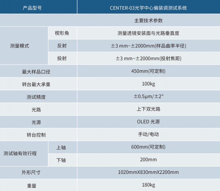 COPS Master光学中心偏装调测试系统是一款测量单透镜与多透镜组中心偏差的高精度测量仪器。该设备具有楔形角、反射、透射和曲率半径测量功能,可用于光学镜片及镜片平行度、同轴度检测,平面光学元件楔形角测量,红外热像仪镜头装备制造和高精度可见光镜头的装配制造过程中。设备具有双光路、气浮式转台、冷光源:人机交互性良好,自动曝光、自动聚焦,一键式测量设备测试数据精确,可靠性高,可实时显示测量结果保存数据、生成测试报告等特点。
