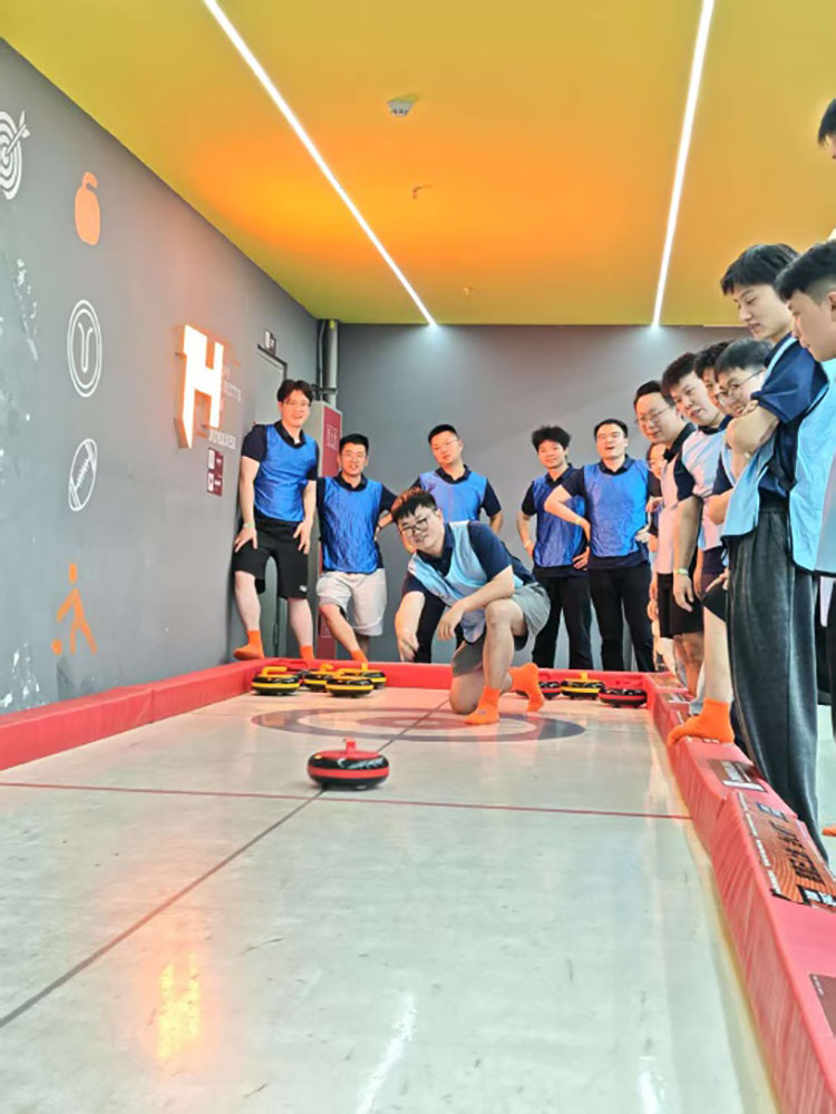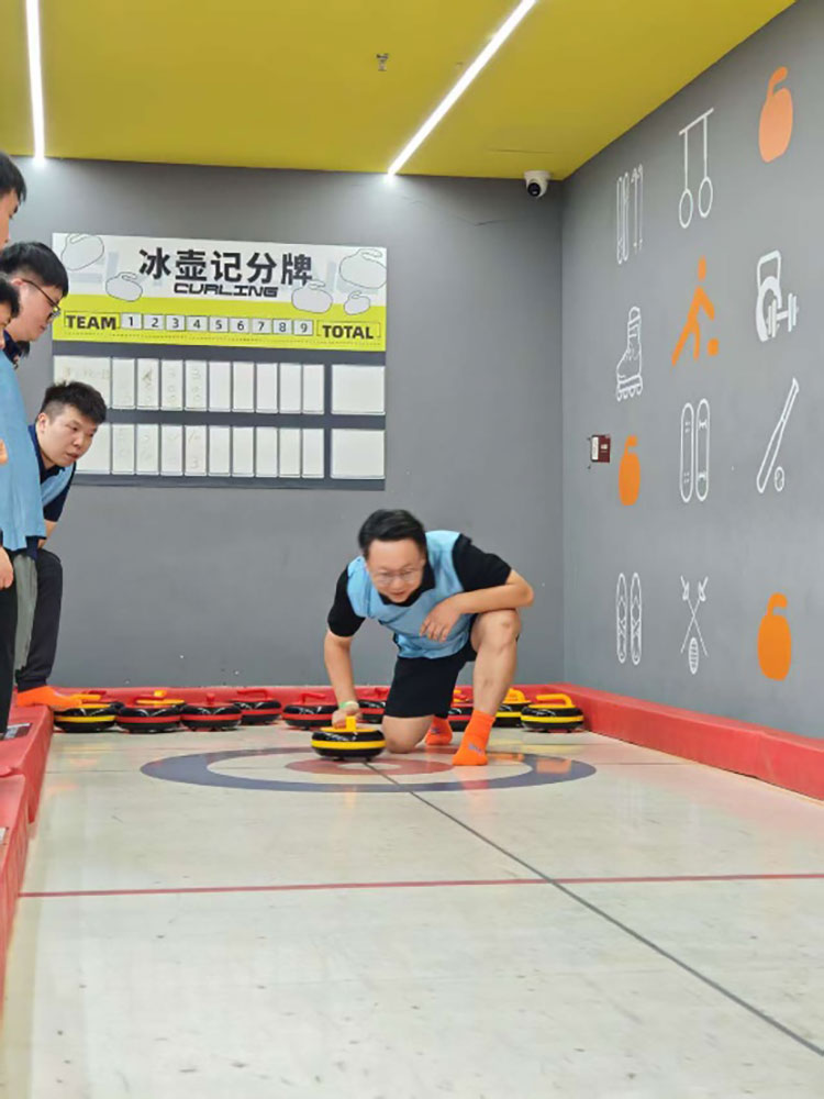 下午14:00,全体成员准时抵达活动场地。在教练的带领下,大家随机分组,迅速破冰,现场欢声笑语不断。随后,团队进入了本次团建的三大主题挑战——保龄球、射箭、冰壶,每个项目都考验着团队的协作与策略。