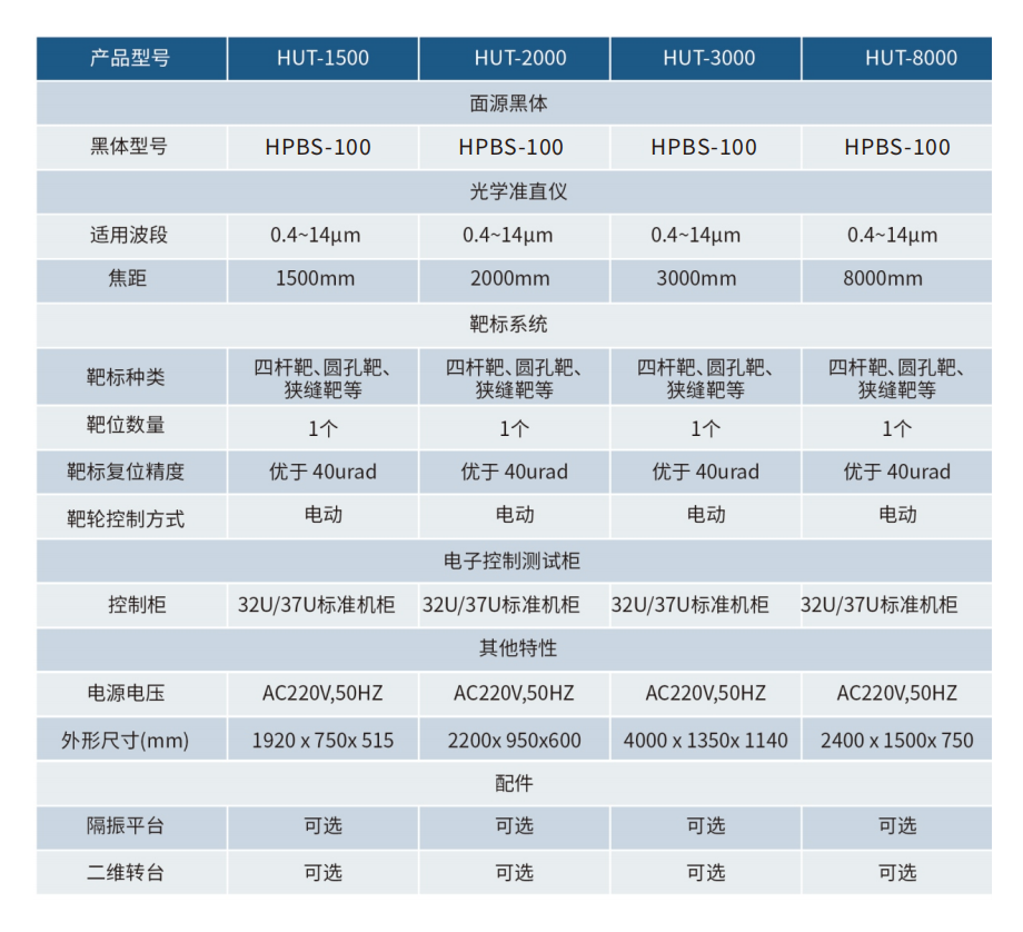 热像仪综合性能测试系统是一系列高性能的热像仪整机性能测试与评价系统,可应用于热像仪整机装调、性能测试。既可以完成表征热像仪成像性能水平参数(如 MRTD、NETD、MTF等)的测试;又可以完成热像仪在工程实际应用所要求的技术指标(如 FOV、光轴一致性、光轴稳定性等)的测试:还可以用于热像仪实时图像调校。
