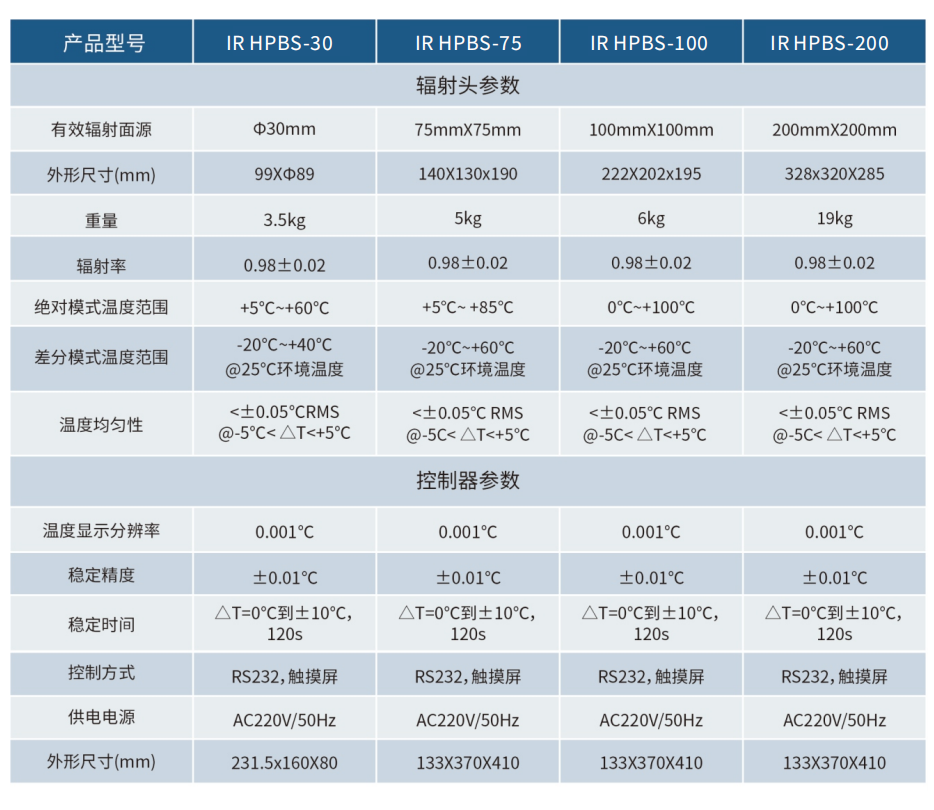 IR HPBS系列⾼精度扩展⾯源⿊体有效发射率达到 0.98 以上,控温稳定精度 0.01℃,具