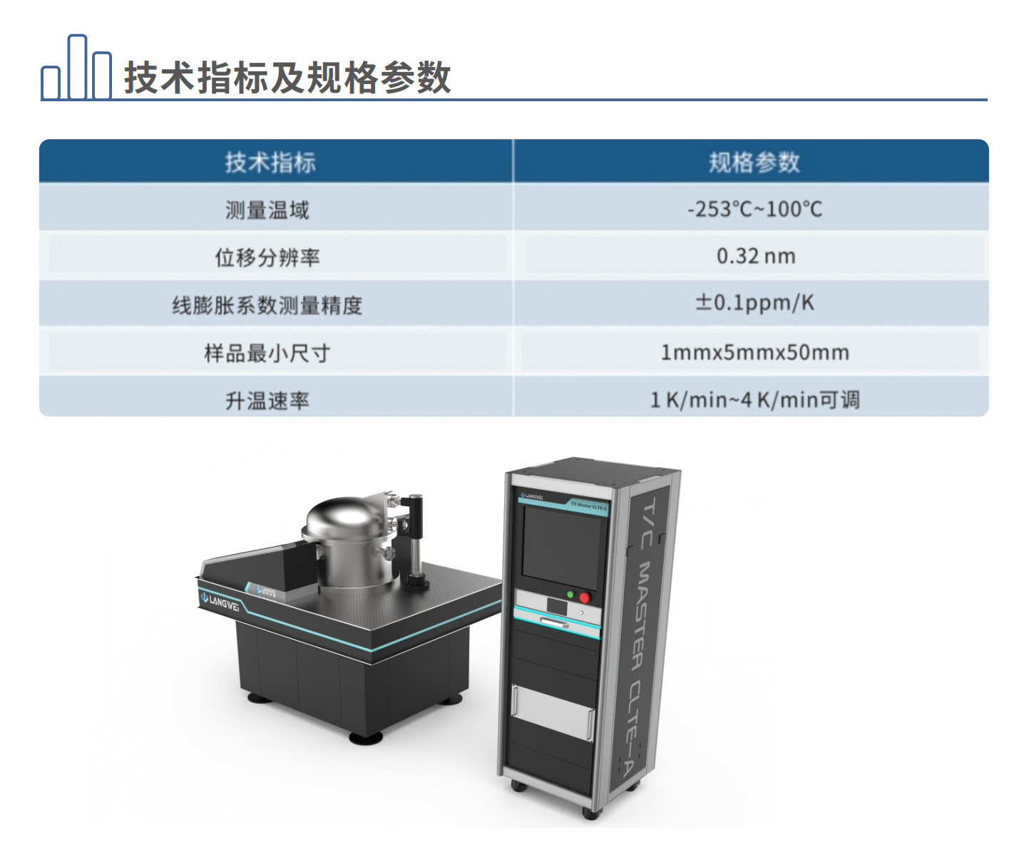 ⽅法,具备⾼通量、零膨胀系数(±0.1ppm/K)试样的线胀系数测量能⼒,测量温度覆盖