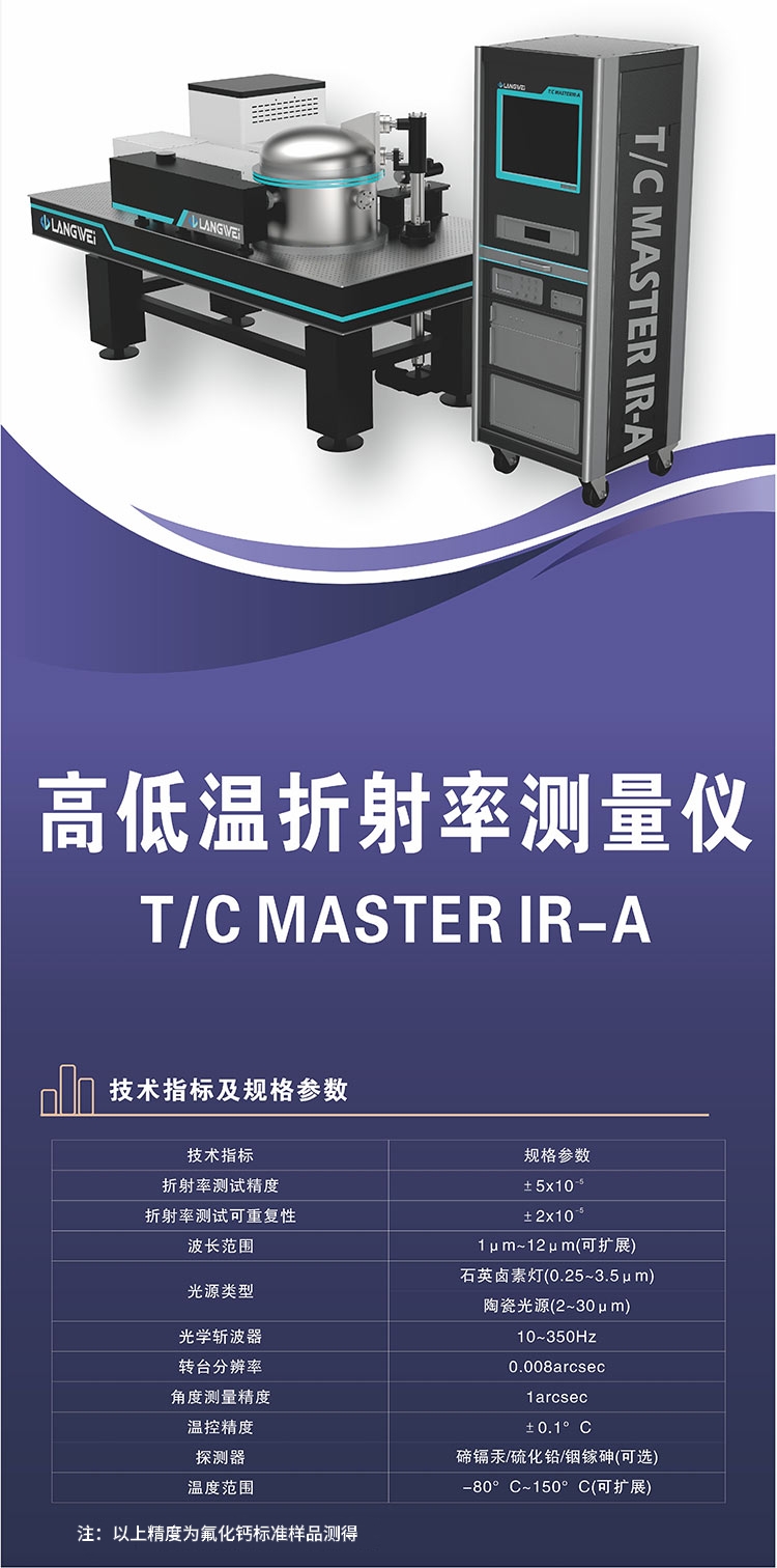T/C MASTER IR-A是用于高、低温环境下红外折射率测量设备(国产化率100%),可实现红外材料在波长1-12um的折射率和dn/dT测量,设备采用液氮或制冷机方式制冷,温度可覆盖-80~150℃。T/C MASTER IR-A具备精度高、软件自动分析等优点,为红外材料性能测试提供了理想的解决方案。