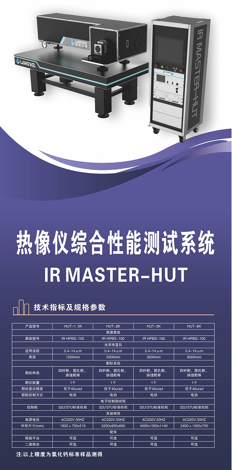 热像仪综合性能测试系统是一系列高性能的热像仪整机性能测试与评价系统,可应用于热像仪整机装调、性能测试。既可以完成表征热像仪成像性能水平参数(如MRTD、NETD、MTF等)的测试;又可以完成热像仪在工程实际应用所要求的技术指标(如 FOV、光轴一致性、光轴稳定性等)的测试;还可以用于热像仪实时图像调校。