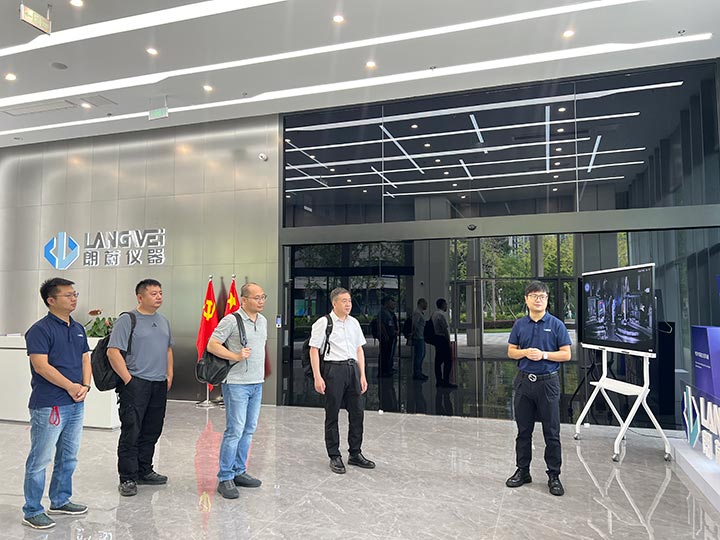 2025年9月18日上午9时许,考察团队在倪总、张总的陪同下,首先参观朗蔚光学核心实验室与办公区域。倪总向胡所长一行介绍,成都研发中心首期投资1.2亿元,公司虽成立仅两年,但始终以技术创新为核心驱动力:不仅在极低温折射率测量仪研发上取得关键突破,在光学精密检测配套设备等关联领域也已实现国内领先。实验室中,精进的研发团队专注调试设备,先进的测量仪器有序陈列,直观展现出公司的技术研发实力,获得考察团队初步认可。